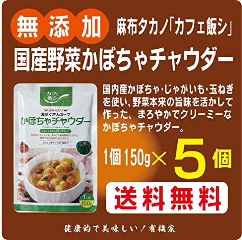 無添加かぼちゃチャウダー 1人前150g 5個 麻布タカノカフェ飯シ 国内産のかぼちゃ 温めるだけでマグカップサイズのスープがお楽しみいただけます 野菜本来の旨味を活かして作った まろやかでクリーミーなかぼちゃチャウダー じゃがいも 玉ねぎを使い ラッピング無料