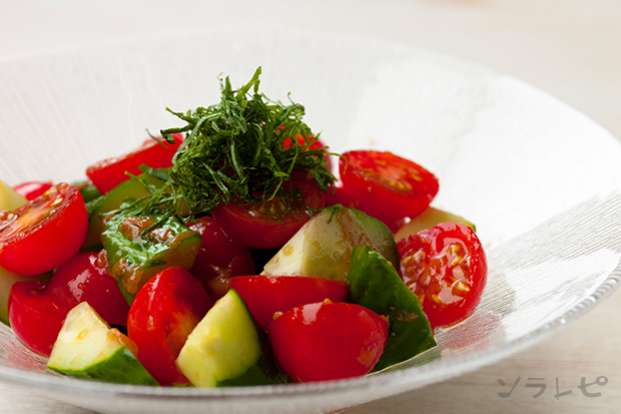 簡単さっぱり副菜きゅうりとトマトの梅しそ和えのレシピ ソラレピ