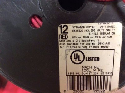 Thhn Thwn 500 Feet 12 Awg Stranded Copper Wire Red Ebay